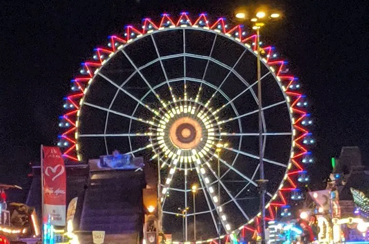 - Das Riesenrad: Es ist für mich das absolute Wahrzeichen des Wasens. Eine Fahrt im Riesenrad ist nicht nur entspannend, sondern bietet auch eine atemberaubende Aussicht über das gesamte Festgelände und weit darüber hinaus. Besonders bei Sonnenuntergang ist die Stimmung einfach magisch.
